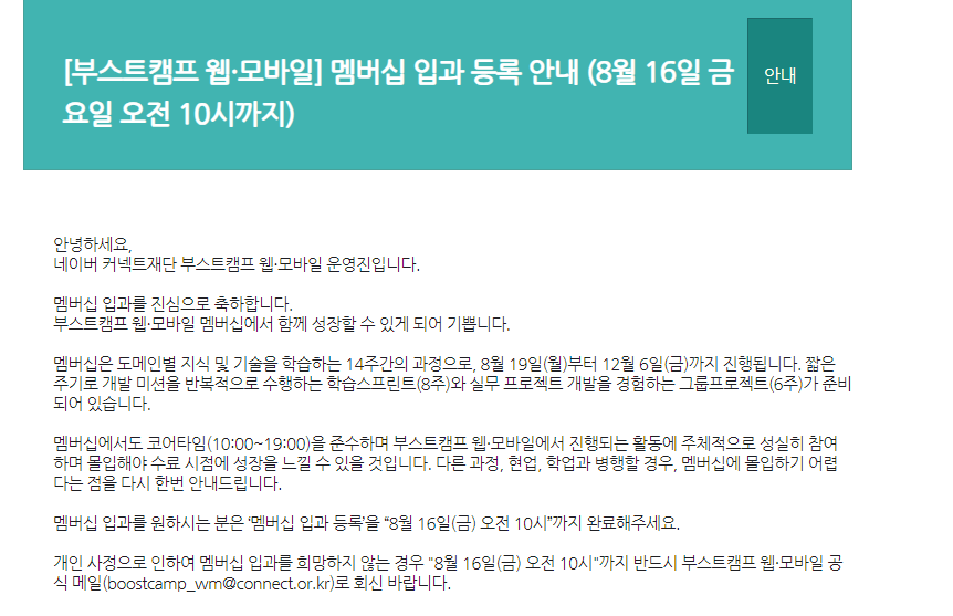 나는 네이버 부스트캠프 챌린지 웹풀스택 과정을 수료했다. 혹시나, 부스트캠프에 대해 모르는 사람이 있을 수도 있으니 챌린지 과정이 어떤 것인지 간단히 설명을 해보겠다.